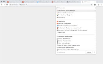 Дополнение включает нечеткое автозаполнение, позволяя пользователям фильтровать вкладки по заголовку или URL без проблем. Просто нажав ⌘/Ctrl⇧K для начала фильтрации, пользователи могут перемещаться по выбору с помощью стрелок и быстро переключать вкладки, нажав ⏎. Последние обновления включают возможность перетаскивать вкладки между окнами и функцию темного режима, улучшая пользовательский опыт и настройку.